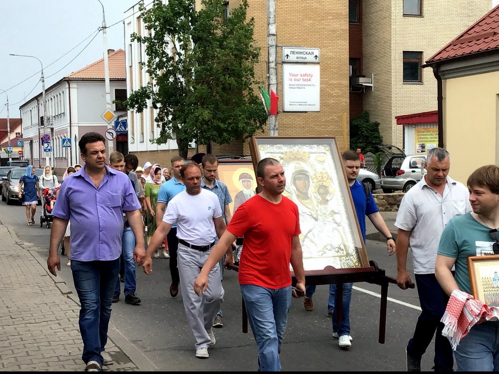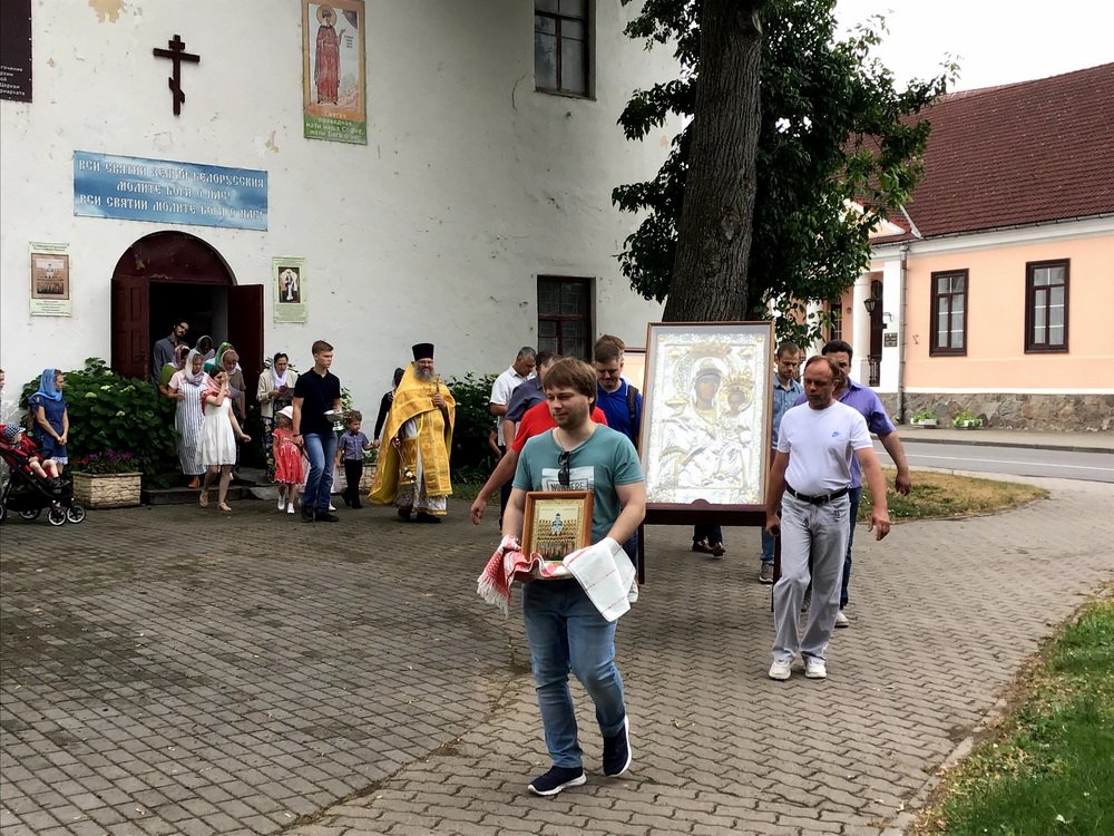 Предварила крестный ход Божественная литургия в часовне святой праведной Софии, княгини Слуцкой. В завершение богослужения настоятель прихода протоиерей Олег Абрамович обратился к собравшимся с праздничной речью и передал поздравления верующим от правящего архиерея Преосвященнейшего Антония.