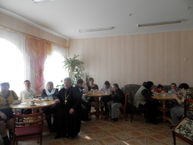 | | 23 ФЕВРАЛЯ 2015 (Понедельник) 11:16:46 Сёстры Всехсвятского прихода города Лиды во главе с настоятелем общины протоиереем Владимиром Яромич поздравили с Масленицей, угостили блинами подопечных Отделения дневного пребывания молодых инвалидов ГУ «Лидский районный территориальный центр социального обслуживания населения».