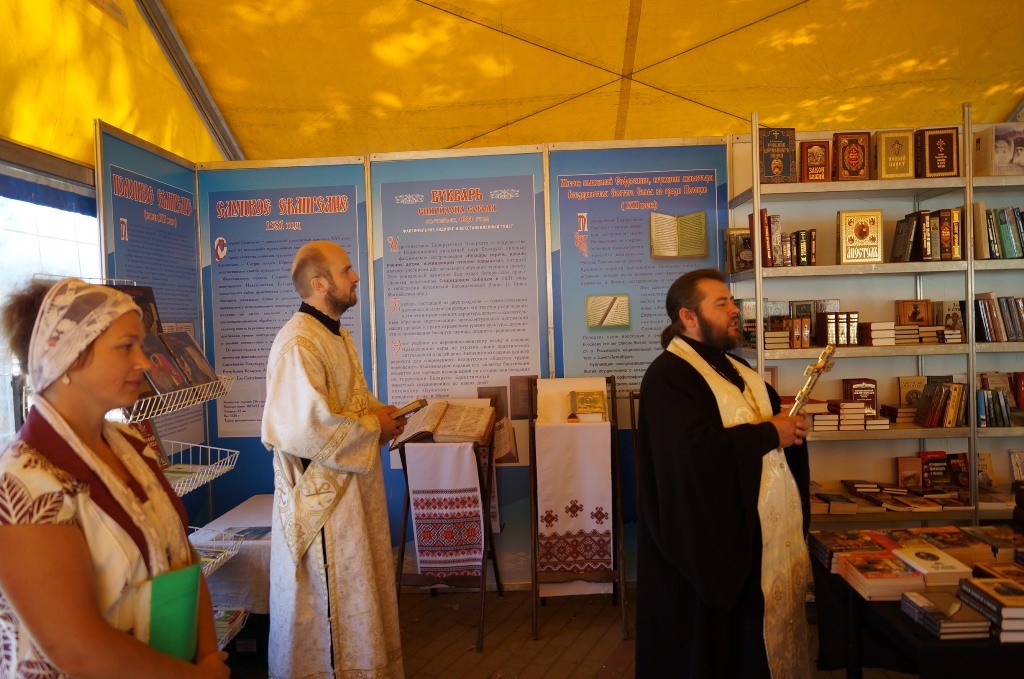По окончании молебна отец благочинный обратился к собравшимся со словами приветствия и назидания. Священнослужитель поблагодарил организаторов выставки за предоставленную жителям города возможность приобщиться к христианскому веро- и нравоучению через книгу.