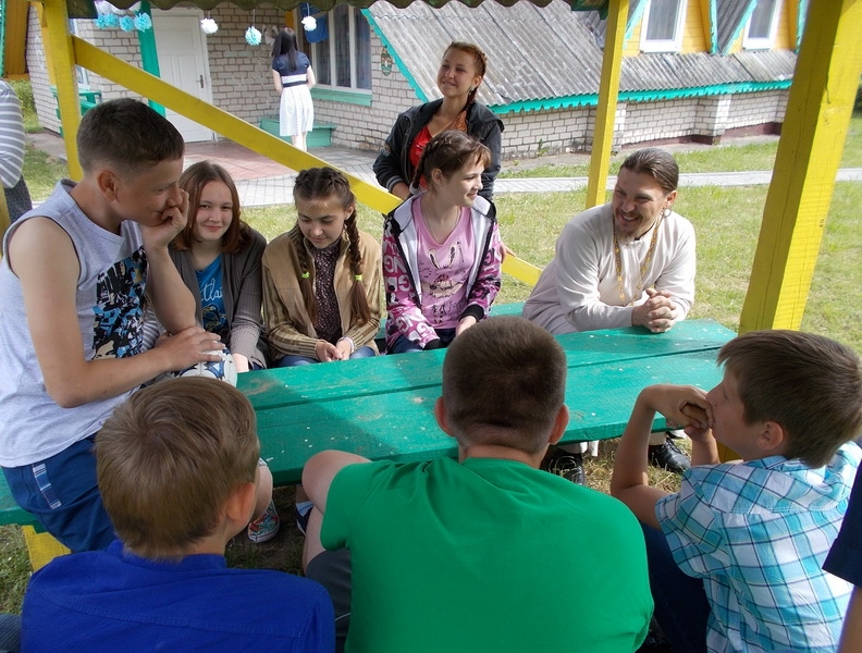 По окончании торжественной линейки состоялось освящение лагеря, а затем в каждом домике-экипаже прошли встречи со священниками. В "Духовной аптеке" ребята смогли получить рецепты, как научиться добродетели и стать счастливыми.