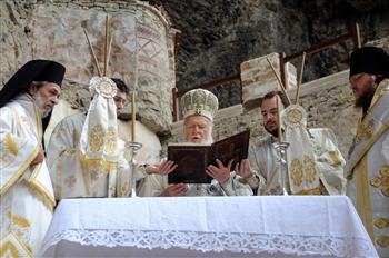 | 16 АВГУСТА 2013 (Пятница) 11:47:34 15 августа патриарх Константинопольский Варфоломей отслужил Литургию в монастыре Панагия Сумела, расположенном в турецкой провинции Трабзон. Это была четвертая Литургия в этом древнем монастыре с момента возобновления здесь служб 3 года назад. Патриарху сослужили епископы из Австралии и Украины. «Побывать здесь – это важный и ценный опыт как для каждого из нас, так и для любого христианина вообще», - заявил патриарх в своей речи. «Последние инициативы ЮНЕСКО, связанные с монастырем Сумела, нас весьма радуют. Мы считаем, что эти усилия будут содействовать развитию и продвижению этого региона. Монастырь в прошлом году был внесен в список объектов Всемирного наследия ЮНЕСКО в Турции… Мы также очень благодарны нашему правительству и всему турецкому народу за то, что уже 4 года мы имеем возможность служить Литургию в этом святом месте». Патриарх Варфоломей прибыл в монастырь в сопровождении заместителя губернатора провинции Трабзон Халиля Ибрагима Кантекина. Саму Литургию посетило около 350 человек, среди которых были и представители оппозиционной в Турции Республиканской народной партии. Монастырь Панагия Сумела был открыт для служб 4 года назад после 88-летнего перерыва с разрешения Министерства культуры и туризма Турции. С того времени службы там совершаются каждый год в день празднования Успения Пресвятой Богородицы. / sobor.by/ По материалам hurriyetdailynews.com Перевод Надежды Филипчик (просмотров 2356) |