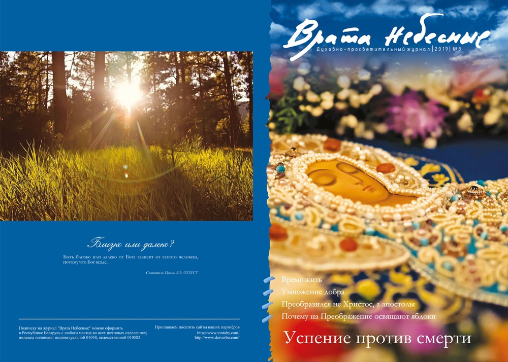 | 20 АВГУСТА 2019 (Вторник) 12:00:19 Основные темы августовского номера духовно-просветительского журнала "Врата небесные": Преображение Господне — что произошло на горе Фавор? Об истории праздника и традициях, с ним связанных; Успение Божией Матери — чему может научить этот праздник? Христианское осмысление смерти.На журнал можно оформить подписку с любого месяца во всех почтовых отделениях Республики Беларусь. Индексы подписки: индивидуальный — 01058, ведомственный — 010582. Сайты партнёров журнала: vrataby.com и deiverbo.com. Читайте в № 8, 2019: Научите! "Научите оставаться человеком, когда вокруг творится ... знает что!" — просит Ольга ПРИМАЧЕНКО и делится наболевшим: "…Я встречала много разных людей. Праведников, постящихся и бьющих поклоны, но готовых пнуть тебя в спину, стоит только замешкаться у стола со свечами. Грешников, пьющих с утра водку под подъездом и в этих самых подъездах писающих, но заботливо подвязывающих кривые хилые берёзки во дворе мягкой ветошью, чтобы те лучше росли. Очень умных людей, попрекающих глупых, но так зло и гадко, что едва сдерживаешься, чтобы не заткнуть им рот рукой и не напомнить, что ум и яд несовместимы…" Без злобы А митрополит Сурожский АНТОНИЙ (Блум) напоминает рецепт борьбы со злом, данный Христом: "“Ударившему тебя по щеке подставь и другую”. Но наш жизненный опыт подсказывает, что из этого ничего не получается, так как меня обязательно ударят и по второй щеке. Но дело в том, что если подставить другую щеку без злобы, то, хотя человек тебя и ударит, сила зла, которая над ним властвовала, получит неисцелимую рану". Время жить Свою мини-повесть Валерий ПАРХОМОВИЧ начинает с чёрного юмора: "Я смертельно болен. Маленькая горошина в моей голове скоро превратится в бобовое зёрнышко. И тогда мои мозги не выдержат, надавят всей своей массой на черепную коробку, и она расколется, как орех…". Узнав, что дни его сочтены, главный герой идёт домой… И, оказывается, за это время, всего за какой-то час, можно успеть пройти путь от ада полного отчаяния до решения "зажить наконец-то не чужой — своей жизнью!" И эту возможность может подарить именно смерть, близкая смерть... На реках Вавилонских "Любимое время — три недели перед Великим постом, когда поют псалом “На реках Вавилонских”. Он рассказывает о таких, как я, жизнь которых проходит в барахтанье и суете. Мечемся от одного к другому, хлопочем о пустом, и захватывают нас реки Вавилонские, и несут в никуда. И нет ничего прекрасней, чем пристать к тихой, незыблемой гавани Христовой и укрыться в ней. Но вначале нужно ведь её найти…" — утверждает Тамара КОШЕВНИКОВА и рассказывает о том, как она пришла к вере… Православный храм Франкфурта-на-Майне Интервью Ильи БРУШТЕЙНА со священником Георгием Полочеком, служащим в Свято-Никольском храме Франкфурта-на-Майне. Отец Георгий — коренной немец, католик, принявший Православие. На вопрос журналиста, почему отверг католичество, отвечает как умудрённый жизнью философ: "О Католической Церкви за всю свою жизнь я не сказал и не скажу ни одного дурного слова... На всё воля Господа. Он хотел, чтобы я вырос в католической семье, был прихожанином католического храма. А потом привёл меня в Православие. Если мужчина встретил свою любовь, женщину своей мечты, женился на ней, то это совсем не значит, что он разочаровался во всех других женщинах..." Благословенная 