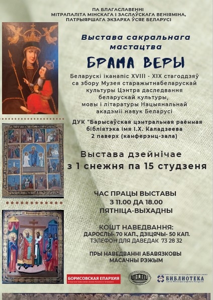 | | 7 ДЕКАБРЯ 2020 (Понедельник) 11:06:50 В Борисовской центральной районной библиотеке имени Ивана Колодеева открылась выставка церковного искусства "Врата веры".