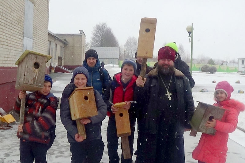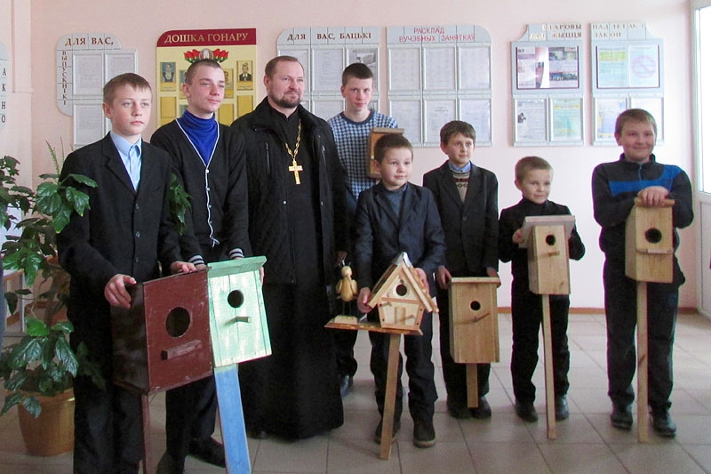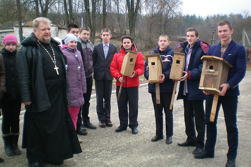 25-28 марта в Кореличском благочинии прошла акция "Встретим перелётных птиц". Во всех учреждениях образования района учащиеся и дошкольники самостоятельно или с помощью родителей изготовили, а затем вместе с педагогами и священнослужителями развесили на деревьях новые скворечники. Кроме того, священники провели духовно-нравственные беседы о христианском отношении к окружающей среде.