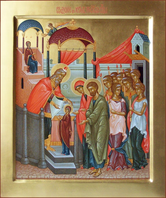 | 4 ДЕКАБРЯ 2017 (Понедельник) 10:38:07 Родители Девы Марии, праведные Иоаким и Анна, молясь о разрешении неплодства, дали обет, если родится дитя, посвятить его на служение. Когда Пресвятой Деве исполнилось три года, святые родители решили выполнить своё обещание. Собрав родственников и знакомых, одев Пречистую Марию в лучшие одежды, с пением священных песен, с зажжёнными свечами в руках привели её в Иерусалимский храм. Там встретил Богоотроковицу первосвященник со множеством священников. В храм вела лестница в пятнадцать высоких ступеней. Младенец Мария, казалось, не могла бы Сама взойти по этой лестнице. Но как только Её поставили на первую ступень, укрепляемая силой Божией, Она быстро преодолела остальные ступени и взошла на верхнюю. Затем первосвященник, по внушению свыше, ввёл Пресвятую Деву в Святое святых, куда из всех людей только раз в году входил первосвященник с очистительной жертвенной кровью. Все присутствовавшие в храме дивились необыкновенному событию. Праведные Иоаким и Анна, вручив Дитя воле Отца Небесного, возвратились домой. Преблагословенная Мария осталась в помещении для девственниц, находившемся при храме. Вокруг храма, по свидетельству Священного Писания (Исх. 38; 1 Цар. 1, 28; Лк. 2, 37) и историка Иосифа Флавия, имелось много жилых помещений, в которых пребывали посвящённые на служение. Глубокой тайной покрыта земная жизнь Пресвятой Богородицы от младенчества до вознесения на небо. Сокровенна была и Её жизнь в Иерусалимском храме. "Если бы кто спросил меня, - говорил блаженный Иероним,- как проводила время юности Пресвятая Дева,- я ответил бы: то известно Самому Богу и Архангелу Гавриилу, неотступному хранителю Её". Но в Церковном предании сохранились сведения, что во время пребывания Пречистой Девы в Иерусалимском храме она воспитывалась в обществе благочестивых дев, прилежно читала Священное Писание, занималась рукоделием, постоянно молилась и возрастала в любви к Богу. В воспоминание Введения Пресвятой Богородицы в Иерусалимский храм Святая Церковь с древних времён установила торжественное празднество. Указания на совершение праздника в первые века христианства находятся в преданиях палестинских христиан, где говорится о том, что святая царица Елена построила храм в честь Введения во храм Пресвятой Богородицы. В IV веке упоминание об этом празднике есть у святителя Григория Нисского. В VIII веке проповеди в день Введения произносили святители Герман и Тарасий, Константинопольские патриархи. Праздник Введения во храм Пресвятой Богородицы - предвозвестие благоволения Божия к человеческому роду, проповедь спасения, обетование Христова пришествия./ sobor.by/ patriarchia.ru (просмотров 2438) |