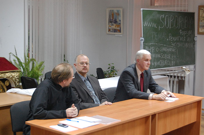 | | 11 ДЕКАБРЯ 2008 (Четверг) 21:53:27 Сегодня в Институте Теологии имени святых Мефодия и Кирилла Белорусского государственного университета прошла лекция на тему «Христианский взгляд на современный финансово-экономический кризис». Перед студентами-теологами и сотрудниками церковных учреждений выступили профессор, доктор экономических наук диакон Константин Голубев и профессор, доктор экономических наук Сергей Лукин. Приглашенные лекторы рассказали об основных принципах современной мировой экономики и её внутренних проблемах, которые привели к мировому кризису. Обсуждение этих вопросов продолжится на форуме Белорусского православного информационного портала Собор.by. В Институте теологии планируют в будущем регулярно проводить встречи, посвященные христианскому взгляду на экономические проблемы. / Юлия Каптур/ sobor.by / (просмотров 2514) |