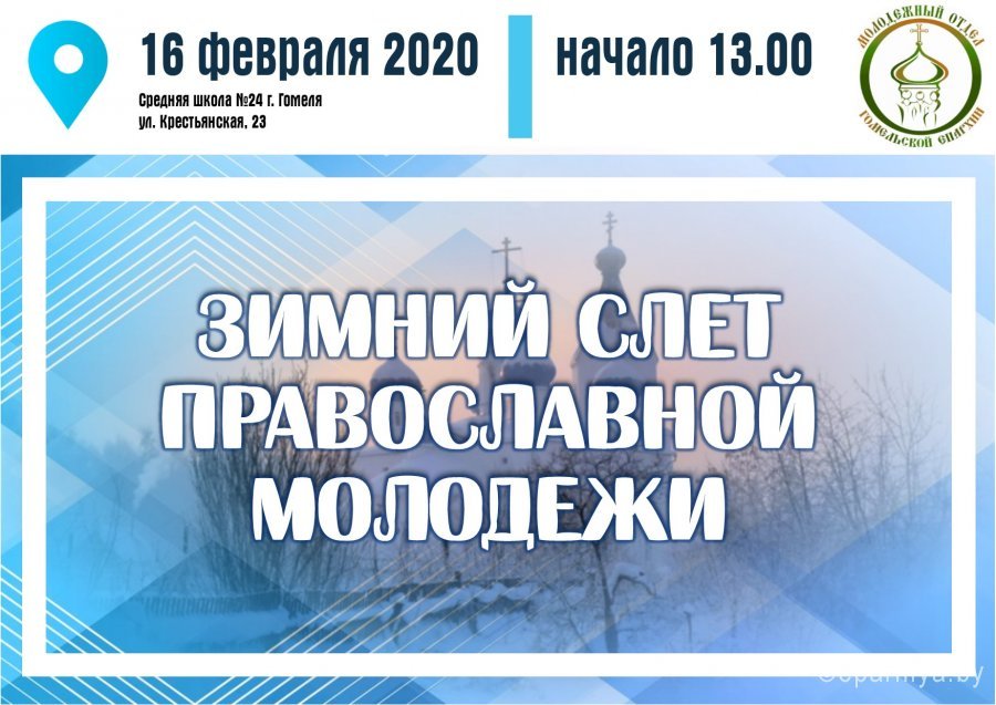| | 11 ФЕВРАЛЯ 2020 (Вторник) 14:00:53 16 февраля в 13:00 на базе средней школы №24 города состоится Зимний слет православной молодежи Гомельской епархии.