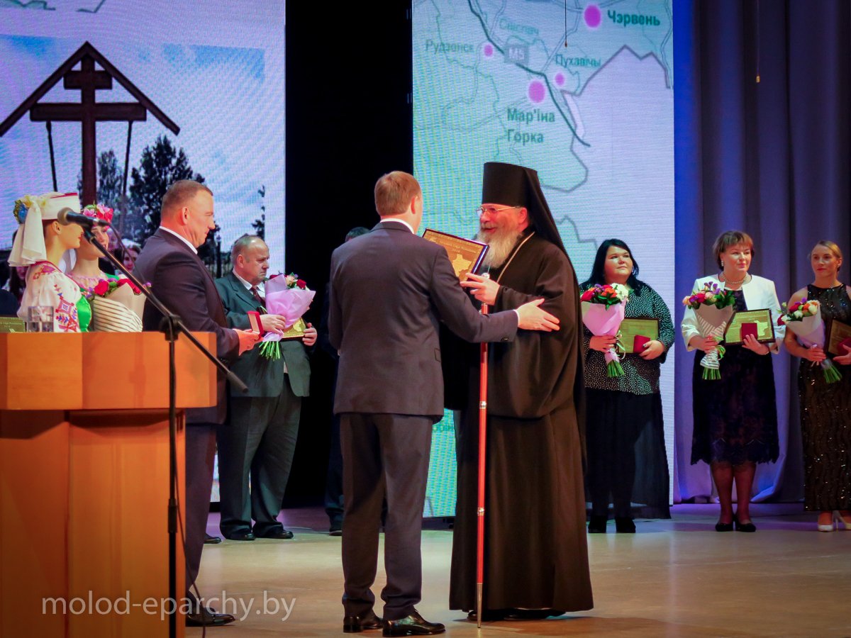 | 23 ЯНВАРЯ 2019 (Среда) 11:09:02 18 января во Дворце культуры города Молодечно прошло торжественное мероприятие, посвящённое 100-летию со дня образования БССР. На мероприятии состоялась церемония награждения почётным званием "Человек года Минщины" за 2018 год.В церемонии приняли участие председатель Миноблисполкома Анатолий Исаченко и помощник Президента — инспектор по Минской области Игорь Евсеев. Поздравляя тех, кто стал "Человеком года Минщины", Анатолий Исаченко подчеркнул, что каждый из номинантов внёс вклад в развитие столичного региона. Почётное звание присвоено 28 представителям области. В номинации "Деятельность органов местного управления и самоуправления, общественная деятельность и духовное возрождение, молодёжная и информационная политика" лауреатом премии стал епископ Молодечненский и Столбцовский Павел. По итогам работы за 2018 год выбраны и награждены лучшие специалисты в номинациях: "Промышленность, торговля и общественное питание, бытовое обслуживание, финансовая деятельность, предпринимательство", "Агропромышленный комплекс, охрана окружающей среды, лесное хозяйство", "Жилищно-коммунальное и дорожное хозяйство, строительство и архитектура, топливно-энергетический комплекс, транспорт и связь", "Социальная сфера (социальная защита населения, культура, образование, наука, физическая культура, спорт и туризм, здравоохранение)", "Обеспечение законности и правопорядка, предупреждение и ликвидация чрезвычайных ситуаций, укрепление обороноспособности". Почётное звание "Человек года Минщины" присуждается ежегодно на конкурсной основе. На его получение могут претендовать люди, внёсшие большой личный вклад в реализацию идей, давших значительный экономический эффект или улучшивших организацию труда, обслуживание населения, в разработку и освоение технологий, производство новых видов продукции, имеющих важное народно-хозяйственное значение. При определении претендентов на получение премии учитываются профессиональные и нравственные качества, значимость, актуальность, эффективность результатов деятельности./ sobor.by/ church.by (просмотров 1478) |