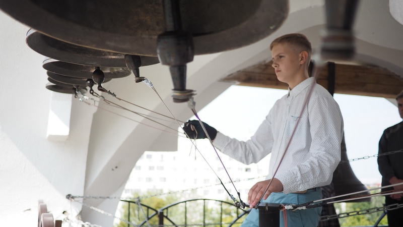 | 29 АВГУСТА 2017 (Вторник) 14:10:59 В последние дни календарного лета, в канун праздника Успения Пресвятой Богородицы, над Солигорском звучал переливистый колокольный звон. В рамках празднования Дня шахтёра и Дня города в Солигорске состоялся фестиваль "Солигорские звоны". Для участия в звонарском форуме приехали звонари из всех епархий Белорусской Православной Церкви. Мастеров колокольного звона услышали десятки людей - прихожане кафедрального собора Рождества Христова и прохожие.История "Солигорских звонов" берёт начало с 2016 года, тогда состоялся первый фестиваль. В этом году своё искусство показать и на других посмотреть приехали 14 мастеров. Зазвучали первые удары в колокола - и город наполнился звоном. Богослужение всегда предваряется и завершается колокольным звоном - голосом, который слышен с колокольни. Этот звон призван создать особое настроение и "дозвониться" до сердец молящихся. Колокольный звон никого не оставляет равнодушным. Епископ Слуцкий и Солигорский Антоний: - Сегодня к нам в город из всех епархий БПЦ приехали звонари, люди, которые освоили это непростое ремесло. Они умеют управлять колоколами, говорить с колоколами. Сегодня наши звонари собрались здесь для того, чтобы поздравить солигорчан с праздником, чтобы слышалась не только музыка и барабанная трель, но чтобы люди услышали прекрасную мелодию колокольного звона, которая гораздо древнее, чем все звуки, привычные нам на праздниках. Колокол был создан не для того, чтобы развлекать людей, чтобы они танцевали под его звуки, колокол – это молитва, и звон колокола предназначен для того, чтобы человек вспомнил о Боге, о своих ближних. Солигорская звонница по своей величине и значимости – третья в Беларуси. Она насчитывает тринадцать колоколов, общий вес которых – семь тонн. Самый большой колокол весит три тонны. Несмотря на это многотонные колокола поддаются и девушкам, и юным звонарям. Татьяна, Витебск: - Я преподаю в воскресной школе, как-то мне поступило предложение организовать курс колокольного звона для детей из воскресных школ. В 2015 году, на Татьянин день, мы начали первые занятия. Вместе с детьми изъявили желание обучаться некоторые родители. Говорят, пути Господни неисповедимы. У каждого из присутствующих на фестивале звонарей был свой путь на колокольню. Семён Федоров, Сторобин: - В детстве, когда я проходил мимо храма, мне было интересно, как звонят в колокола. Я сам из Сторобина. Там храм построили, появились пять колоколов и батюшка сказал, что надо научиться звонить. Я поехал в Чижевичи, и там меня научил звонить старый дедушка. Я звонил, но не было опыта. Потом я занялся профессионально колокольным звоном. За год свои техники наработал, научил несколько человек колокольному звону. Виталий Михайлов: - Звон определил всю мою жизнь. Благодаря колокольному звону у меня появилась мечта, которую я сейчас осуществляю. Звонить я начал с 11-летнего возраста. Тогда я участвовал в фестивале "Колокола России" и узнал о науке компаналогии. Благодаря звону я решил заниматься наукой в целом. Фестиваль "Солигорские звоны" отличает принцип - главное не победа, а участие. На фестивале нет призовых мест, победители - все звонари. После завершения фестиваля владыка Антоний вручил сертификаты участникам и поблагодарил организаторов фестиваля, среди которых - Богдан Берёзкин.