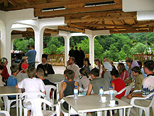 " Пока поднималась к Кресту, на душе было тихо и спокойно. Слезы навернулись, когда услышала о трагедии в Косово. Суетные мысли отошли, и стало страшно оттого, что люди могут быть такими циничными . Бомбежка Сербии началась в Великий Пост, а в самый светлый для христиан праздник Христова Воскресения , на снарядах, которые взрывались здесь, было надписано: "С пасхой!". Кощунственно звучит и название той военной операции "Добрый ангел"…" К счастью, ни одна бомба не упала на монастырь, и сейчас он является духовным центром Сербии, в котором проводятся семинары для преподавателей Закона Божия и собираются ежегодно молодые люди сербской национальности со всех стран мира. Наш хор выступил перед преподавателями Закона Божия, которые как раз собрались в день нашего приезда на семинар со всей Сербии. Узнав, что дети поют литургические песнопения , они попросили их исполнить. И были возгласы: "Вот видишь, можно же с детьми это петь" и аплодисменты. Утром помолившись на Божественной литургии, в которой принимал участие наш хор, позавтракав, мы простились с владыкой Лаврентием. На прощание ребята да и все мы спели белорусские песни прямо во дворе монастыря, а две девушки-преподаватели подарили нам песню о Косовом поле, и мы продолжили свой путь в древнюю столицу Черногории - Цетине.
