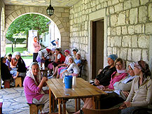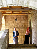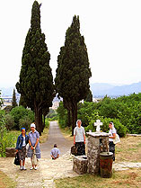 Нам довелось увидеть монастырь Святой Троицы, иначе называемый "Превлока". Это древнейшая столица сербской митрополии, которую установил в 1219 году святитель Савва. Когда-то здесь спасалось много монахов, в подчинении обители находилось 40 храмов ближних остров Адриатического приморья, где ежедневно совершались Литургии. В середине 15-го века на престольный праздник Святых архангелов были отравлены 72 монаха, предатель подсыпал в суп яд, Монастырь тогда был полностью разрушен. Когда митрополию возглавил Владыка Амфилохий, он решил восстановить обитель и возродить монашескую жизнь. Земля, принадлежавшая во времена коммунистов Вооруженным Силам Югославии, сегодня с большим трудом возвращается законным хозяевам. Нас принял настоятель монастыря и по древнему обычаю угостил холодной водой и кусочками сахара. Ребята спели ему многие лета.