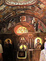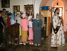 Первой святыней, с которой познакомились в Черногории, стал мужской монастырь Рождества Божией Матери, построенный в 16-м веке. С благоговением переступили мы порог храма, где хранится одна из величайших святынь православного мира -- десница Иоанна Предтечи, по великой милости Божьей находившаяся в тот момент в нашем приходе в Минске, а также частица Животворящего древа Господня. Сербской Православной Церкви удалось вернуть их верующим после падения коммунистического режима. А вот еще одна святыня - Филермская икона Божией Матери, по преданию написанная св. евангелистом Лукой, -- пока находится в музее. Благодаря отцу Варнаве наш батюшка Александр и регент Татьяна смогли помолиться перед этим чудотворным образом. Все эти святыни были вывезены на Запад из России во время революции.