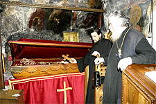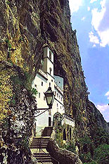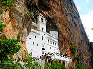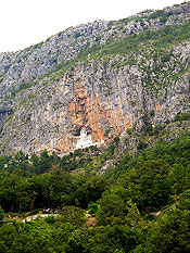 Самая главная святыня Черногории - монастырь "Острог". В нем находятся мощи одного из самых почитаемых святых Сербской Церкви святителя Василия Острожского (день памяти - 12 мая). Несмотря на опасную крутую и узкую дорогу - монастырь расположен на высоте 1695 метров над уровнем моря - ежедневно прибывают около пятидесяти автобусов. Только опытные водители рискуют ехать сюда. Нашу группу доставили в Острог на маршрутных такси. Поблагодарив святителя Василия Острожского за то, что помог нам благополучно добраться, мы один за другим приложились к его святым мощам, находящимся в раке в небольшой пещерке. В монастыре нас с великой любовью принял и благословил игумен Иоанн. В данной обители находится еще одна святыня - ручки мученика Станко, он был простой пастух. Турки заставляли его отречься от православной веры и принять ислам, но он сохранил свою веру. Тело святого было сожжено, а ручки остались в память о том, что праведники живут вечно.
