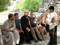 Перед отъездом в Боснию отец Александр и иеродиакон Варнава служили Божественную литругию. Наш хор вместе с сестрами монастыря совершали пение во время богослужения. По окончании литургии нас пригласили на обед. Ну это был и обед - целое пиршество! Сестры постарались для детей на славу.! Испекли даже два постных, но очень вкусных, поверьте на слово, торта!!! Наши хористы исполнили для сестер несколько духовных песнопений и белорусских народных песен. Дети пели от души, чем растрогали новых знакомых. Светлые монахини проводили нас до самого автобуса, и затем еще долго махали вслед, украдкой вытирая слезы. Признаться, плакала и женская половина наших путешественников ( это были мамы наших детей ).