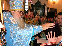 По окончании Божественной литургии владыка митрополит наградил диаконов Ярослава Близнюка, Димитрия Романовича и Дионисия Коростелёва - грамотами Патриаршего Экзарха. Владыка обратился к духовенству и прихожанам с просьбой усилить свои труды и молитвы, дабы в следующем году войти под своды Скорбященского собора.