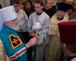 Приветственное слово Митрополита Павла после первой литургии в Минске В ответ на послание Почетного Патриаршего Экзарха Митрополита Филарета своему преемнику, зачитанное управляющим делами Белорусской Православной Церкви архиепископом Гурием, Митрополит Павел обратился к белорусской Церкви с приветствием ... (Просмотров 4600) Подробнее...