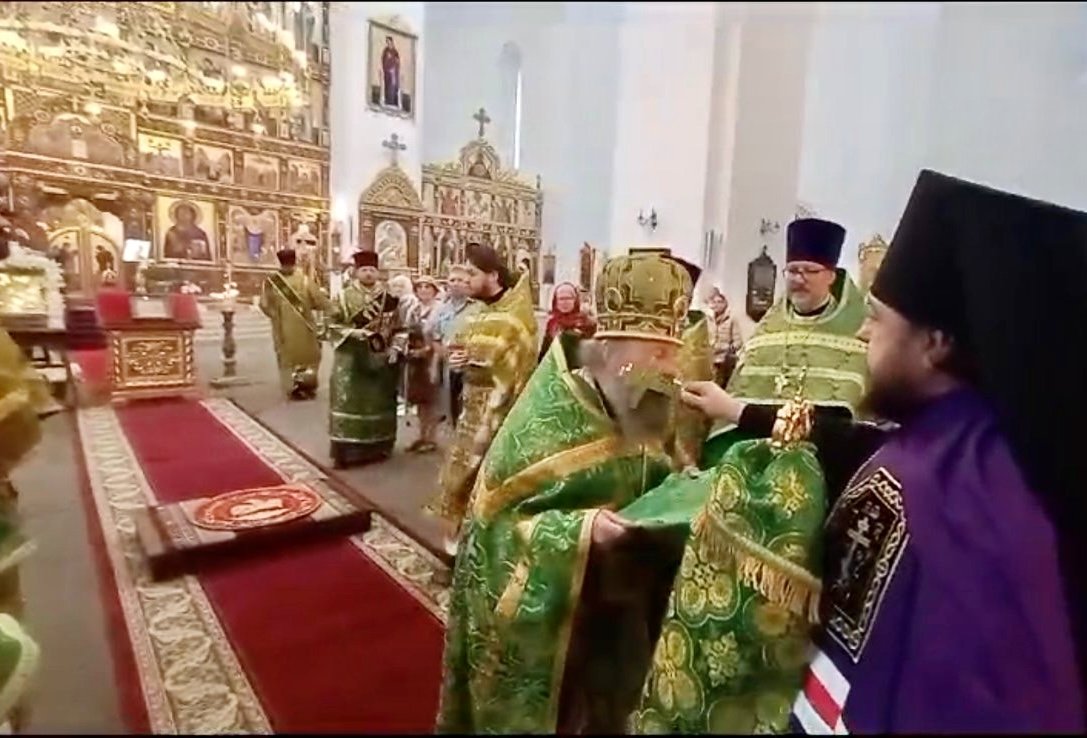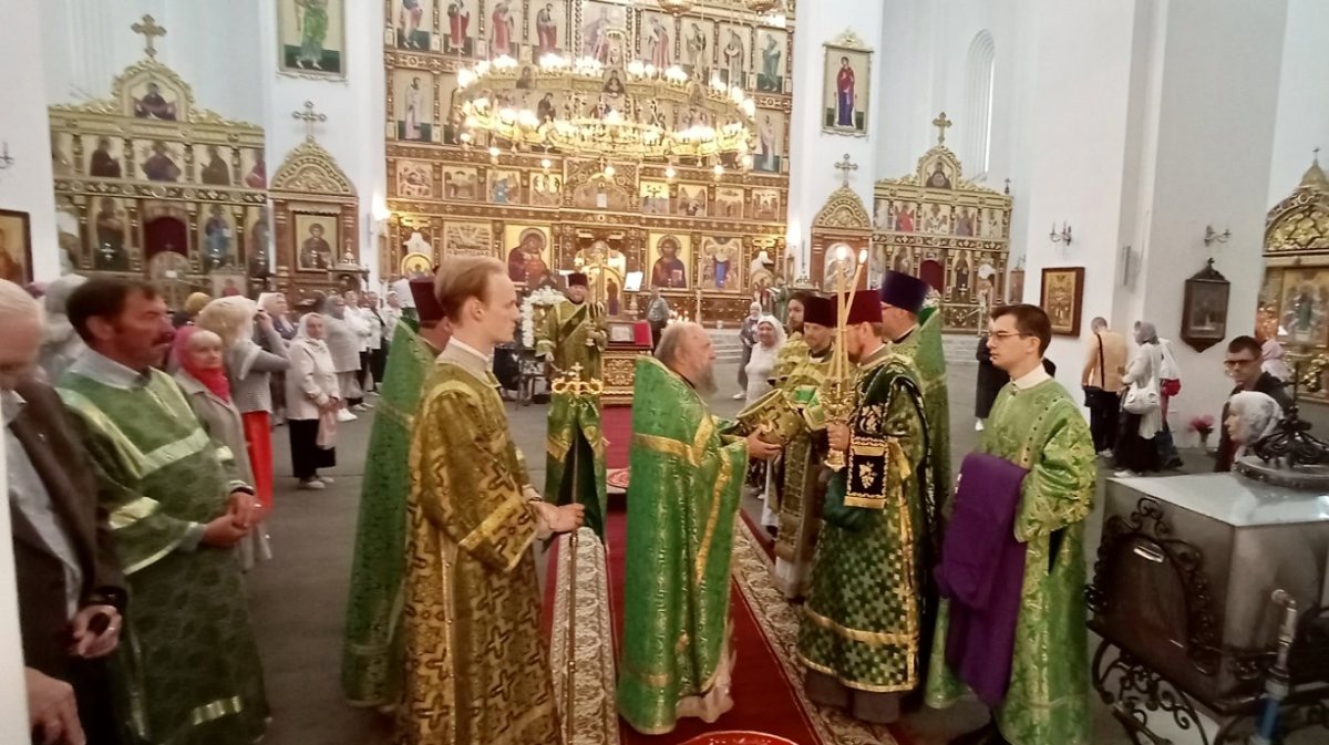 Праздничная Литургия состоялась в соборе иконы Божией Матери "Всех скорбящих Радость". Богослужение возглавил епископ Несвижский Авксентий, викарий Патриаршего Экзарха всея Беларуси в сослужении настоятеля протоиерея Игоря Коростелева и клира.