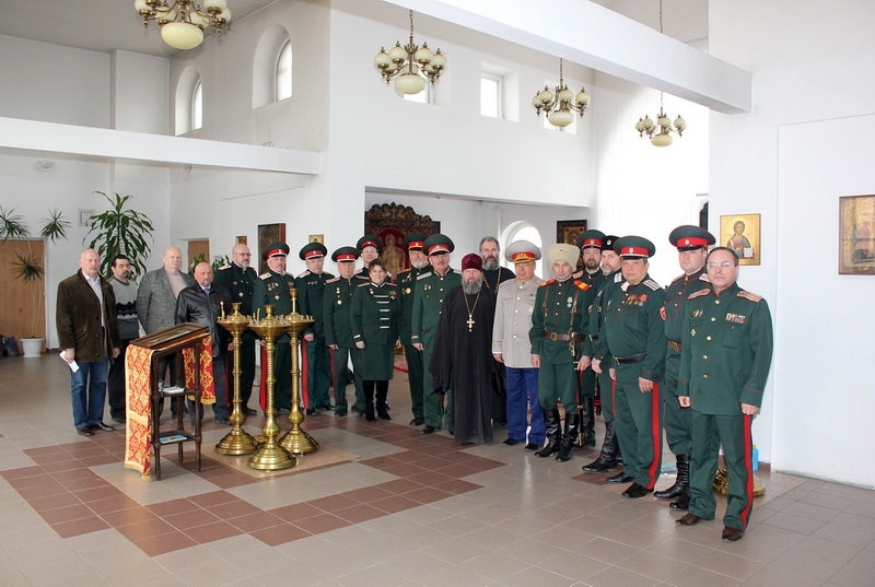 В этом году исполняется 25 лет с тех пор как началось возведение собора, Свято-Евфросиниевской церкви и здания воскресной школы, относящихся к приходу иконы Божией Матери “Всех скорбящих Радость”. Наши казаки пришли к Вам почти с самого первого дня. Вначале маленькие группы, а потом присоединилась и вся организация. Вас будут поздравлять масса верующих людей и тех, которые сегодня пользуются Вашим благословением по патриотическому воспитанию и трудовому обучению. Это люди с ограниченными возможностями, сестринство, ученики воскресной школы. Вы также являетесь духовником фестиваля современной христианской музыки “Благовест”. И всё это осуществляется усилиями одного настоятеля! Но у Вас есть особое свойство характера: преодолевать любые трудности, направлять все коллективы на созидание и возведение крупнейшего православного духовного центра. Господь обнаружил в Вас огромное количество навыков по возрождению православной духовности в прихожанах храма иконы Божией Матери “Всех скорбящих Радость”.