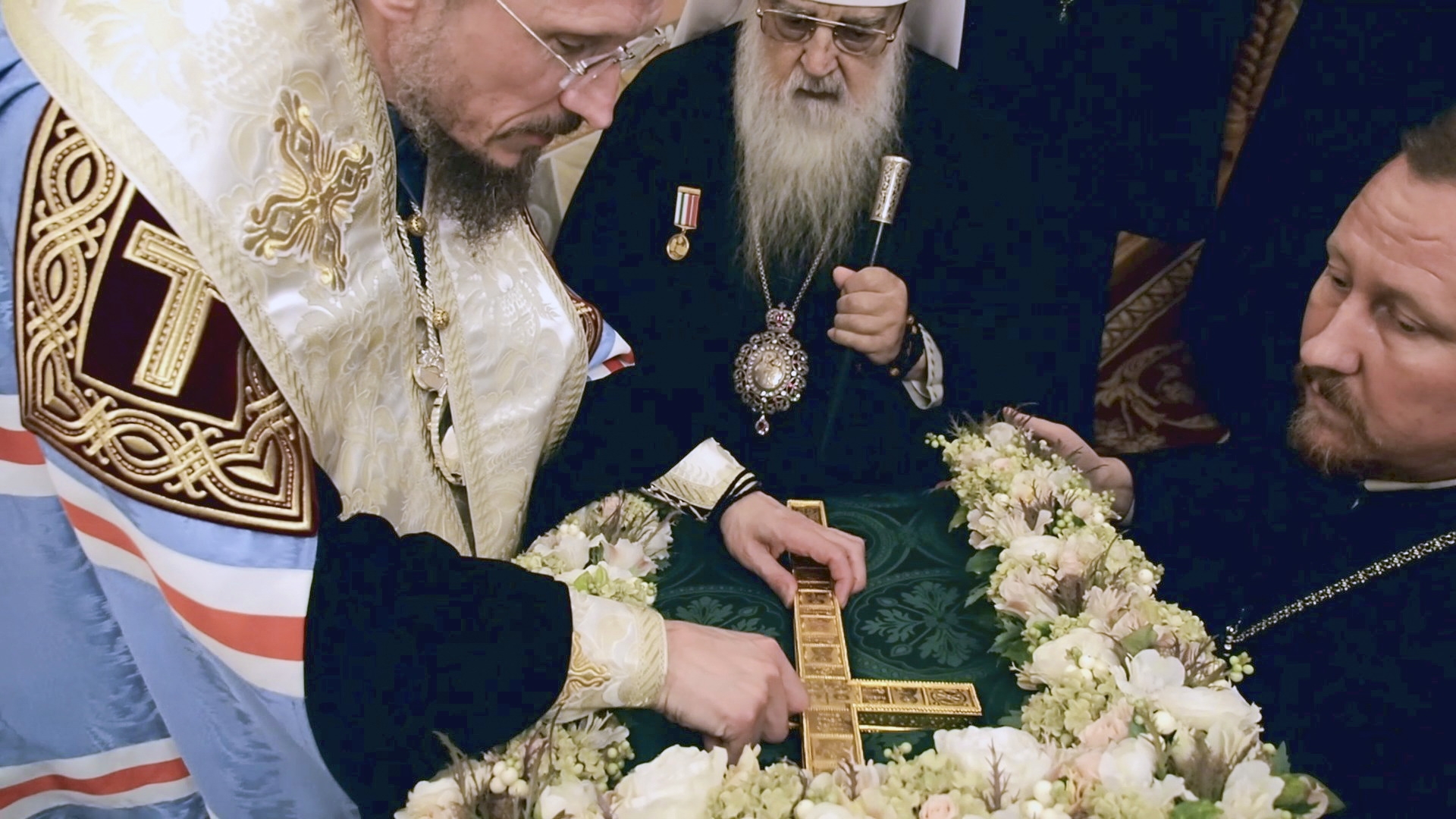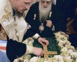Частица Креста Господня - дар митрополита Филарета - вложена в воссозданный Туровский крест