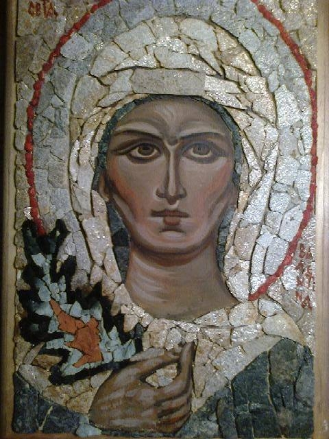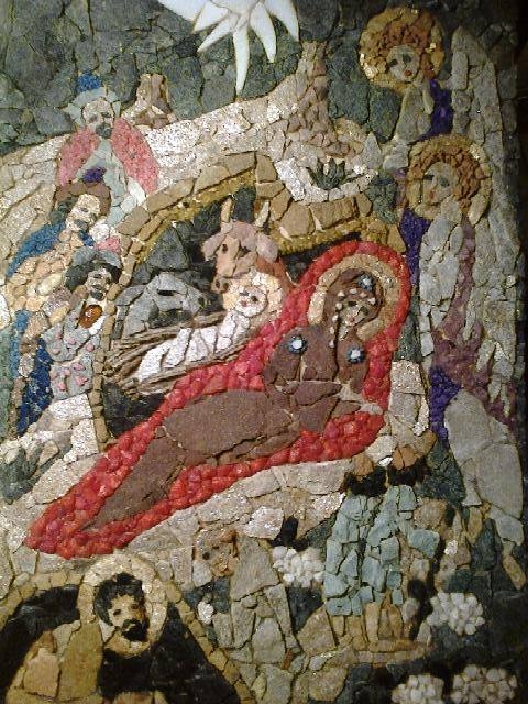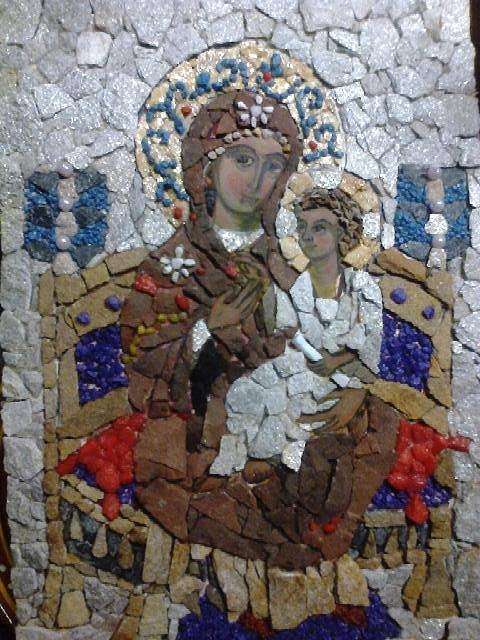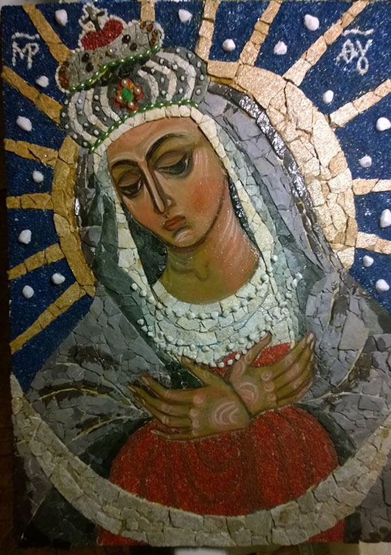 В преддверии Рождества в православной галерее "Буквица", расположенной на территории Всехсвятского прихода в Минске, открылась выставка "Трезвучие надежды". Её авторы - семейный тандем – художница Ксения Ангелова и её мама, мозаичист Елена Петросова. Вместе они работают уже 5 лет, искусно сочетая в своих работах письмо и камень.