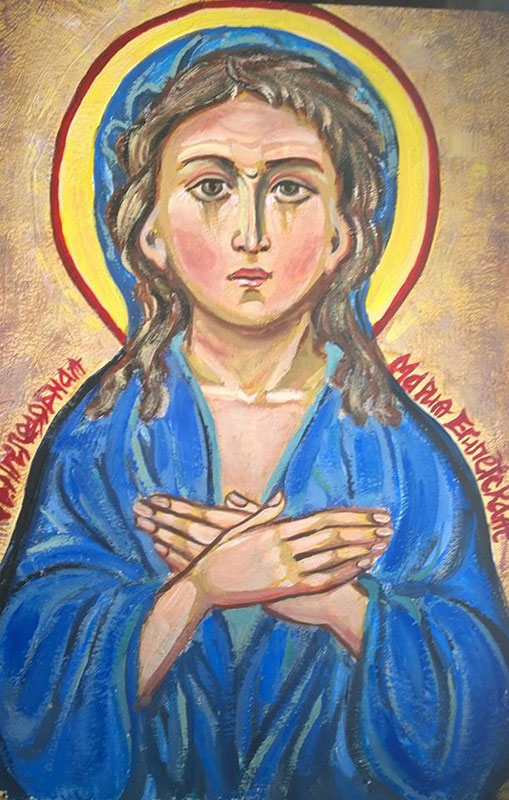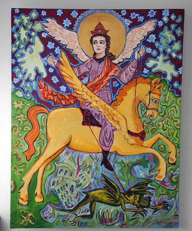 - Ксения очень интересный человек, очень сильный, открытый. Она совершает свой подвиг, пытаясь прожить достойно свою жизнь. Посмотрите, в этих картинах она погружает нас в атмосферу высокого духа и святости. И не взирая на наивную манеру письма и детскость, её работы очень профессионально выполнены.