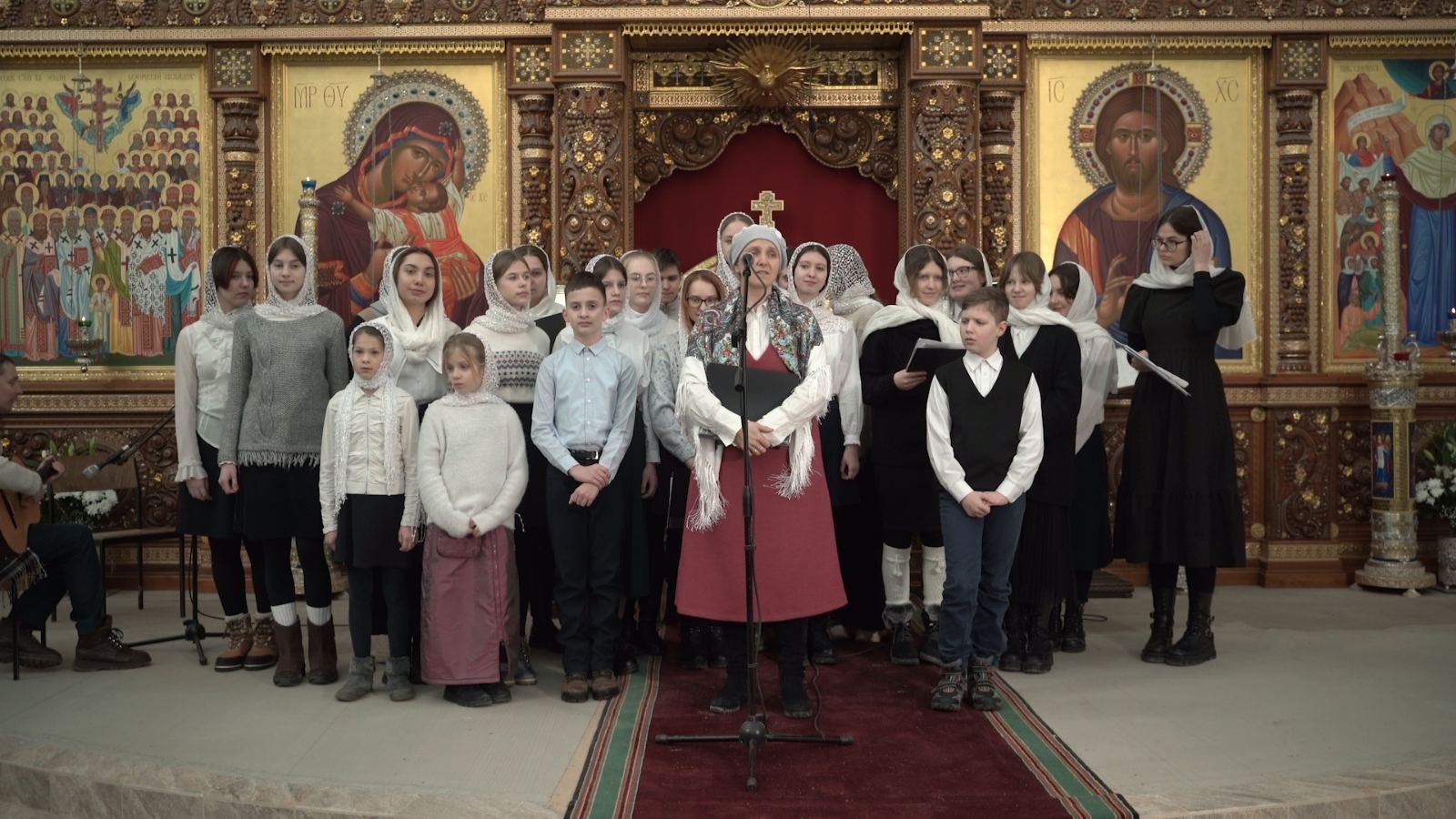 Учащиеся воскресной школы прихода иконы Божией Матери "Всех скорбящих Радость" поют Рождественские колядки./