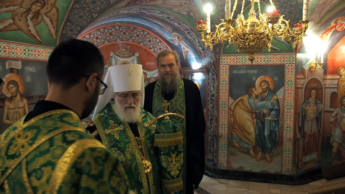 Его Высокопреосвященству сослужили: настоятель прихода храма Рождества Пресвятой Богородицы деревни Тарасово Минского района, председатель Синодального отдела Белорусской Православной Церкви по взаимодействию с Вооруженными Силами и другими воинскими формированиями Республики Беларусь протоиерей Сергий Кузьменков; настоятель прихода храма преподобного Серафима Саровского города Минска, благочинный 7-го Минского городского округа протоиерей Александр Ширитон; настоятель прихода храма Преображения Господня города Минска, руководитель Отдела религиозного образования и катехизации Минской епархии протоиерей Святослав Левицкий; секретарь Минской епархии протоиерей Андрей Волков; настоятель прихода храма Введения во храм Пресвятой Богородицы города Минска, председатель Синодального отдела по тюремному служению Белорусской Православной Церкви иерей Георгий Лопухов; настоятель прихода храма иконы Божией Матери "Всецарица" в городе Минске, председатель Синодального отдела по церковной благотворительности и социальному служению Белорусской Православной Церкви протоиерей Кирилл Шолков; настоятель прихода храма преподобного Сергия Радонежского города Минска иерей Дмитрий Шульга и клирики Серафимовского прихода.