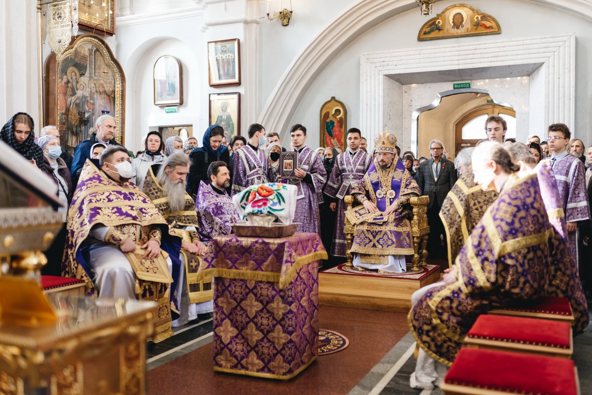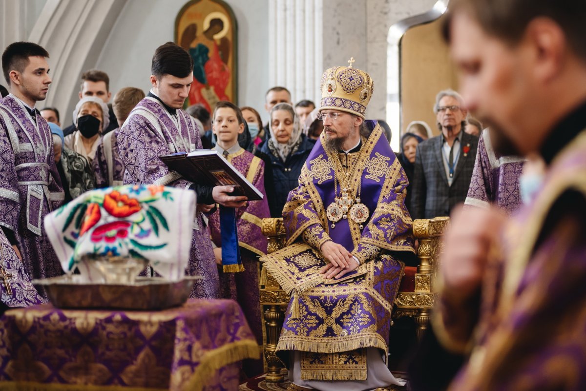 После омовения ног последнего священника Митрополит Вениамин облачился в снятые прежде облачения, взошел на амвон и обратился к народу с проповедью, в которой раскрыл значение состоявшихся сегодня богослужений.