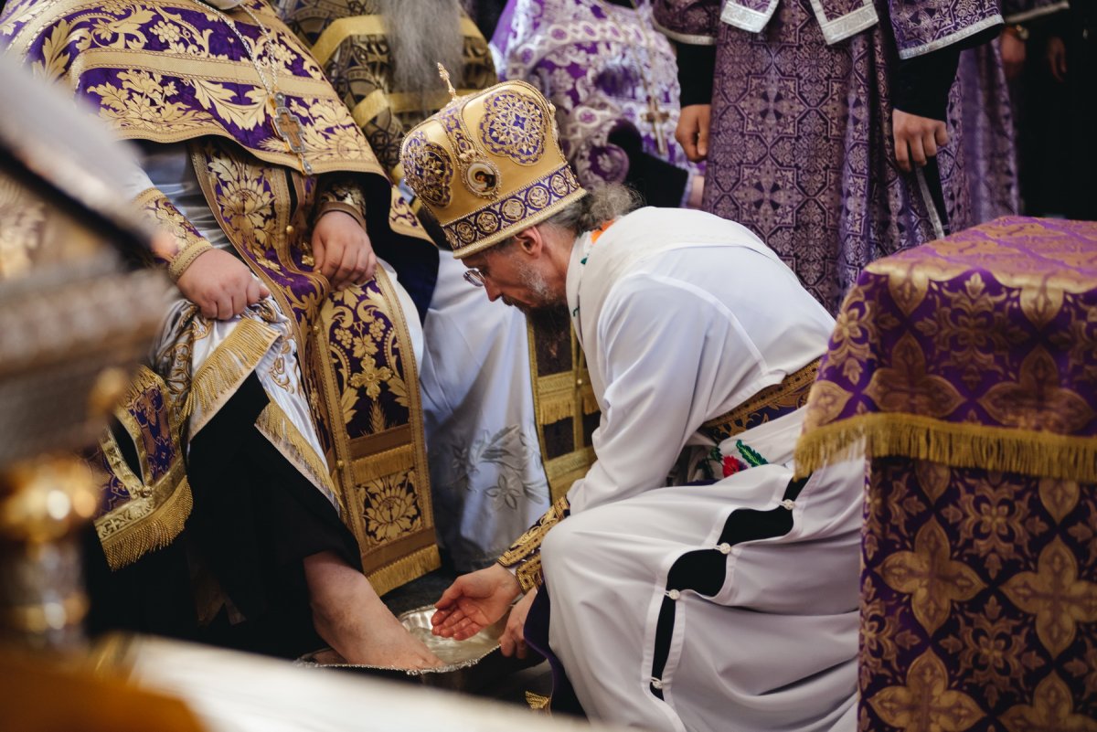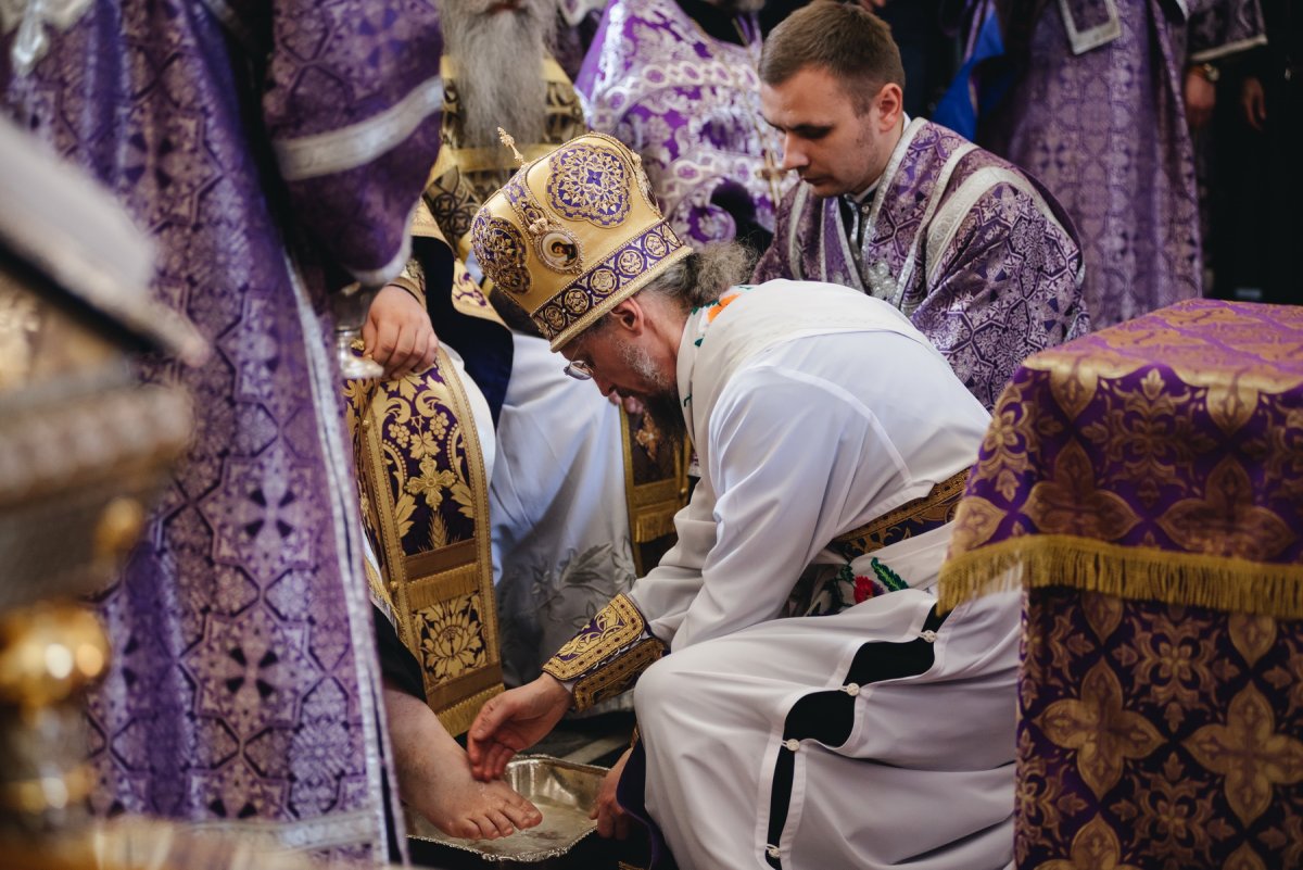 Митрополит Минский и Заславский Вениамин впервые совершил чин омовения ног по образу Христа, умывшего ноги своим ученикам-апостолам за Тайной Вечерей. После заамвонной молитвы в минского соборе Сошествия Святого Духа Митрополит Вениамин вышел из алтаря на кафедру, куда потом спустились 12 священнослужителей, севших на приготовленные скамьи. Владыка Экзарх снял с себя верхнюю часть облачения: омофор, панагии и саккос, после чего препоясался лентием (длинным белым полотенцем) и по очереди умыл ноги одиннадцати священникам. Двенадцатый священнослужитель, по чину символизирующий апостола Петра, сначала отказывается от умовения, но потом, после евангельских слов "Аще не умыю тебе, не имаши части со Мною", просит омыть не только его ноги, но и руки и главу, затем произносится ответ Спасителя: "Измовенный не требует, токмо нозе умыти".