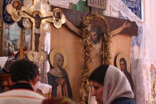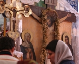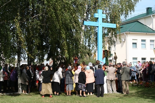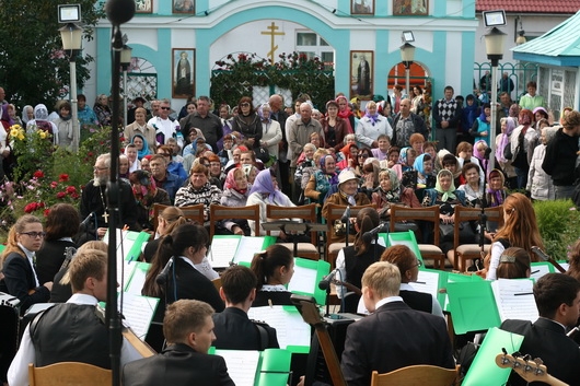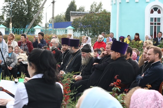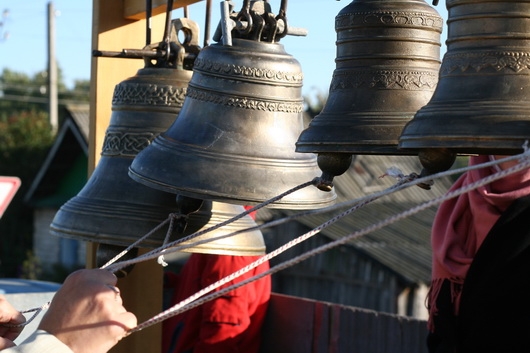 С самого утра в день фестиваля улицы поселка наполнились колокольным звоном - предваряя Божественную литургию, передвижная звонница созывала местных жителей на богомолье.