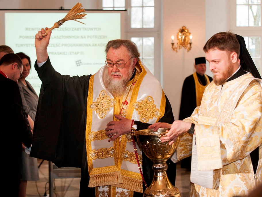 Около ста человек приняли участие в церемонии освящения и торжественного открытия недавно отреставрированных помещений Супрасльской Академии, прошедшей вчера. Представителей светских властей и Польской православной церкви, собравшихся на мероприятии, возглавили премьер-министр Польши Дональд Туск и митрополит Варшавский и всей Польши Савва. После богослужения и официальной части все гости смогли рассмотреть интерьер Академии.Отреставрированная часть монастырского комплекса представляет собой Палаты архимандритов – восточное крыло комплекса между Музеем икон и Домом паломника - и большой учебный корпус. «Сегодня очень светлый день и для Супрасльского монастыря и для всех нас, - рассказал во время торжеств Предстоятель Православной Церкви в Польше митрополит Савва. – Мы прошли очень долгий путь, который привел нас к открытию этих зданий. Работа по возвращению помещений и земель, принадлежавших монастырю, началась в 1982 году. За это время здесь прошла сложная реконструкция, которая и привела нас к сегодняшним торжествам, за что мы благодарим Бога, Святого Духа, в руках Которого мы – лишь орудие». С открытием нового архитектурного объекта православную общественность Польши поздравил и глава Совета Министров Польши Дональд Туск: «Я знаю, что вам пришлось справиться со многими препятствиями, что вы в очень трудное время начали это дело борьбы за монастырь, который сегодня стал предметом гордости не только для православных, но и для всей Польши». Премьер-министр также добавил: «Я верю в то, что Супрасль станет большим символом и метафизическим аспектом в материальном наследии нашей истории. (…) Супрасль – доказательство того, что иногда Божьим промыслом на смену периодам драм и трагедий приходят такие прекрасные события, как сегодняшнее. Я хотел бы, чтобы не только для православного сообщества, но и для всех думающих и чувствующих поляков Супрасль был знаком надежды на будущее. Дела служения и Богу, и человеку возможны тогда, когда люди в согласии готовы совместно трудиться над ними. И за то, что вы дали нам пример такой мудрой, благородной решимости, я хотел бы от имени польского Правительства и всех поляков вас сердечно поблагодарить». Те, кто принимал наиболее активное участие в восстановлении Супрасльской академии, были награждены орденами св. Кирилла и Мефодия. Справка: Супрасльский монастырь был основан в 1498 году маршалом Великого Княжества Литовского и воеводой новогрудским Александром Ходкевичем в Грудеке. Новую обитель заселили монахи киевских монастырей. В 1500 году братия переселилась на берег реки Супраслянки. В том же году был возведён первый деревянный храм Св. Апостола Иоанна Богослова. Возле храма был возведён монашеский корпус. С 1503 по 1511 годы отстраивается каменный Благовещенский собор, сочетающий в своём облике византийский и готический стили. Два придела собора были освящены в честь русских святых — Феодосия Печерского и Бориса и Глеба. Митрополит Иосиф, освятивший собор, подарил обители список чудотворной иконы Божией Матери Смоленской, который впоследствии получил название Супрасльской иконы Божьей Матери. В 1557 году артель иконописцев во главе с сербом Нектарием расписала храм Благовещения фресками в стиле балканской школы. К XVI веку в монастыре сложилась большая библиотека: в 1557 году в ней
