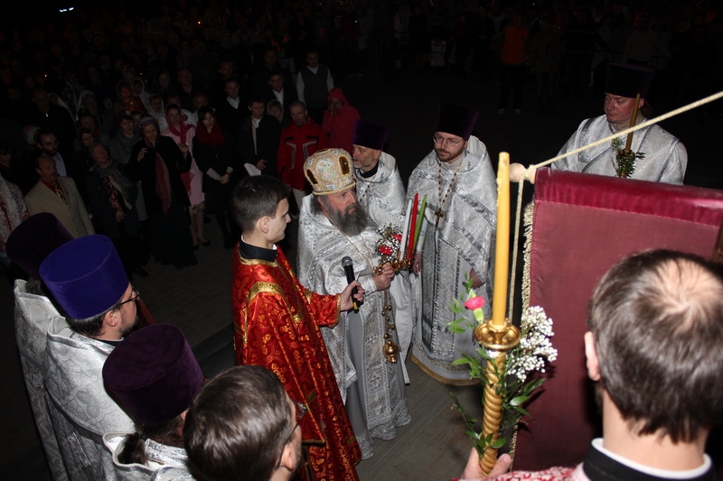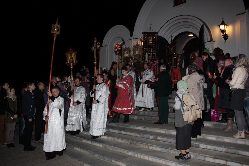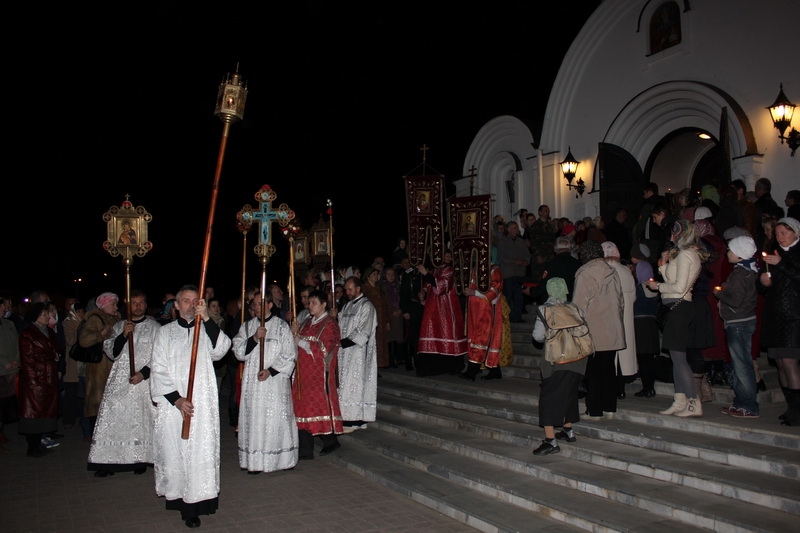 | | 20 АПРЕЛЯ 2014 (Воскресение) 03:38:29 С пением стихиры «Воскресение Твое, Христе Спасе…» вокруг Свято-Евфросиниевской церкви прихода «Всех скорбящих Радость» был совершён крестный ход.