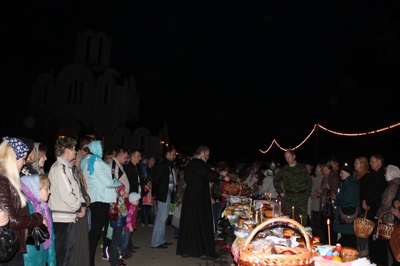«В пасхальную ночь, когда крестный ход, обойдя храм, останавливается перед закрытыми дверями, в душах происходит неуловимое во времени, но духовно значительное мгновение некоего недоумевающего, вопрошающего молчания: «кто отвалит нам камень от двери гроба?» (Мк. 16, 3) и явится ли гроб пуст, ибо воскрес Христос? И когда отверзаются двери пред знамением креста и входим в сверкающий огнями храм при пении ликующего пасхального гимна, сердца наши заливает радость, ибо Христос воскрес из мертвых. И тогда совершается пасхальное чудо в душах наших. «Ныне вся исполнишася света, небо же и земля и преисподняя». (Прот. Сергий Булгаков)./ sobor.by/ Фото: Владимир Громыко (просмотров 6697) |