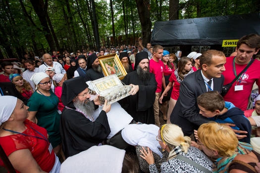 Центром празднования Преображения Господня в Польше стал Марфо-Мариинский женский монастырь на святой горе Грабарке. Гора поклонных крестов, которую называют польским Фавором, в нынешнем году по примерным оценкам собрала около 20 тысяч человек. Первым пунктом торжеств стало приветствие паломниками со всех регионов Польши, а также соседней Беларуси святынь афонского монастыря Симонопетра – частицы древ Животворящего Креста Господня, а также десницы святой равноапостольной Марии Магдалины. Реликвии доставлены в Польшу братией Симонопетры во главе с игуменом монастыря, архимандритом Елисеем. Перед первым молебном ко чтимым святыням к паломникам обратился предстоятель Польской Православной Церкви. Митрополит Варшавский и всея Польши Савва призвал паству быть верными Святому Православию и проповедовать своей жизнью в Церкви Воскресение Христово. / sobor.by / Фото www.cerkiew.pl (просмотров 4855) Новости разделов: