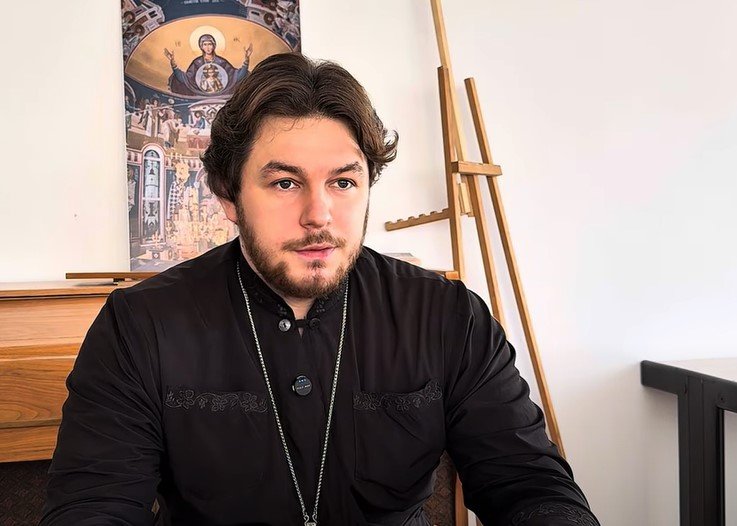 Читает лекцию участникам объединения "Логос" иерей Антоний Бондарев.