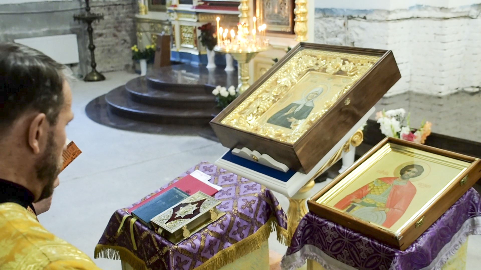 | 5 ОКТЯБРЯ 2020 (Понедельник) 15:17:45 Александро-Невский храм Минска приглашает всех на сугубую молитву о здравии и благополучии родных и близких в непростое для Беларуси время. На последнем престольном торжестве храм получил в дар от фонда равноапостольных Константина и Елены образ блаженной Матроны Московской с частицей мощей. Сейчас по пятницам, перед вечерней, в Александро-Невском приходе начали совершать молебное пение святой, которая горячо почитаема и среди верующих белорусской столицы.Чуть меньше месяца назад приход храма благоверного князя Александра Невского на Военном кладбище Минска получил в дар из России от своих друзей белорусского происхождения – семьи Анастасии Оситис, возглавляющей фонд равноапостольных Константина и Елены – образ блаженной Матроны Московской. Образ торжественно был внесён в храм во время престольного праздника Патриаршим Экзархом всея Беларуси, митрополитом Минским и Заславским Вениамином. Частица мощей блаженной на иконе – также дар, который имеет свою историю. Протоиерей Николай Коржич, настоятель Александро-Невского храма на Военном кладбище Минска: "От Святейшего Патриарха Алексия Второго… Когда-то сразу после канонизации был Архиерейский Собор и частички мощей матушки Матронушки были раздаваемы участником Собора. И один из участников, архиепископ Гурий, нам частичку эту пожертвовал". Сейчас в храме можно не только приложиться к образу блаженной Матроны с частичкой мощей святой, но и поучаствовать в молебном пении с акафистом блаженной, который совершаться каждую пятницу, перед вечерней. На первый акафист людей пришло немного – сарафанное радио еще не сработало. Но те, кто пришли, знали за чем и к кому они идут. Ангелина Крупнова, прихожанка: "Матронушка говорила: "Приходите ко мне, как к живой, и я вам буду помогать". И, действительно, к ней приходишь, рассказываешь все свои скорби, нужды – и она всегда помогает. Я уже давно-давно и в Москву приезжала к мощам, и акафист читала дома – и всегда чувствуется ее помощь. Поэтому и сейчас я пришла. У меня ребенку было 12 лет, был такой возраст сложный очень, и я святую всегда просила. И всегда из самых сложных, трудных ситуаций как-то с ее помощью все разруливалось". О том, что Матронушка, как ласково привыкли называть святую, скоро откликается на молитву, многие минчане уже знают – к ней обращаются в любых жизненных вопросах. Некоторые почти наизусть знают и акафист святой. В Александро-Невском храме призывают молящихся петь его всем вместе, акафист можно распечатать даже с приходского сайта. Протоиерей Николай Коржич, настоятель Александро-Невского храма на Военном кладбище Минска: "Потому мы специально даже хор не приглашали и не просили, чтобы пришли певчие, а чтобы мы осуществляли народное пение, как оно называется. Вот как в кафедральном соборе собираются, в 17.00 в четверг читают акафист святителю Николаю. Конечно, к этому надо прийти, к этому надо готовиться. И об этом моя просьба ко всем, кто сегодня пришел". Те желающие помолиться блаженной Матроне, которые не успевают на акафистное пение (оно начинается по пятницам в 17.00), могут прийти и на молебны с водоосвящением перед иконами блаженной Матроны Московской и святителя Луки Крымского с частицами мощей – они начинаются в 9 утра по вторникам и четвергам. Икона святителя Луки – также дар 