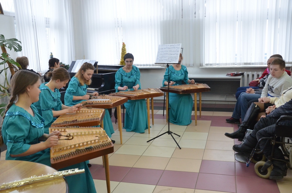 Поздравить молодых людей с главным зимним христианским праздником - Рождеством Христовым и Новым годом приехали музыканты Мира классической музыки и ансамбль цимбалистов "Золотая струна" Минского государственного музыкального колледжа им. М.Глинки.