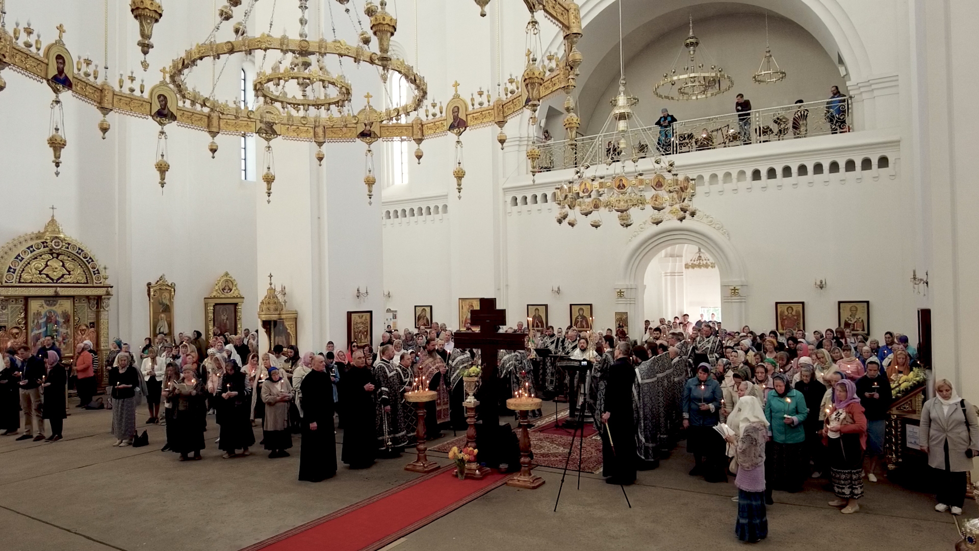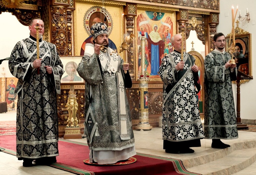 Богослужение возглавил епископ Несвижский Авксентий, викарий Патриаршего Экзарха всея Беларуси в сослужении настоятеля протоиерея Игоря Коростелева и клира прихода храма иконы Божией Матери "Всех скорбящих Радость".