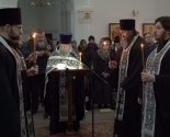 И ныне, Богородичен: Град Твой сохраня́й, Богороди́тельнице Пречи́стая, в Тебе́ бо сей ве́рно ца́рствуяй, в Тебе́ и утвержда́ется, и Тобо́ю побежда́яй, побежда́ет вся́кое искуше́ние, и пленя́ет ра́тники, и прохо́дит послуша́ние.