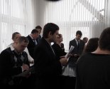 "Христос Воскресе" - радостно поздравил каждого сотрудника настоятель прихода протоиерей Игорь Коростелев. С участием настоятеля праздники проходят особенно радостно и душевно, он желанный и любимый гость на каждом мероприятии Мастерских.