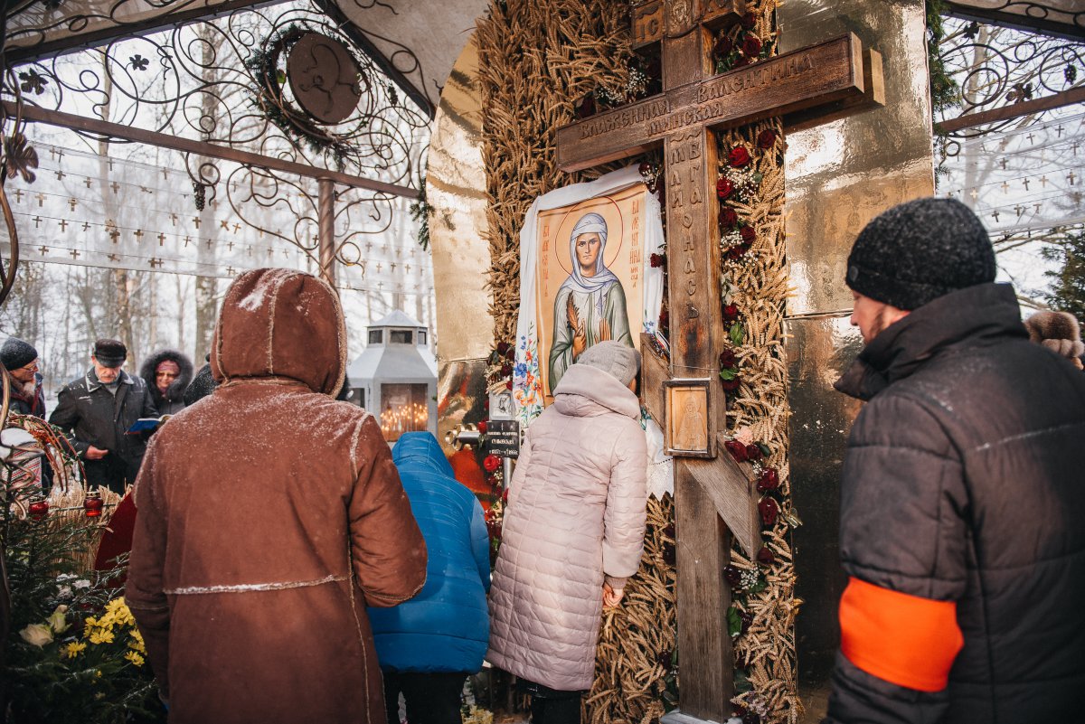 На праздник святой кладбище у деревни Крысово в Дзержинском районе на "олимпийской" трассе Москва-Брест по сути становится храмом под открытым небом – целый день сюда приезжают верующие и в составе паломнических групп на автобусах, и на личном транспорте, идут и пешком несколько километров от ближайшей станции электрички. Ни мороз, ни снег, ни ветер не мешают людям поблагодарить или попросить помощи у святой, которая и при земной жизни многих принимала в ближайшей деревни Коски, и, по её завету, приходят к ней и на могилку.