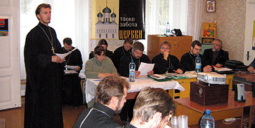 в Гродненской епархии, настраивает присутствующих на деловой разговор. Затем директор