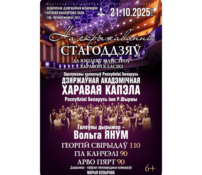 Государственная академическая хоровая капелла Республики Беларусь им. Г.Р.Ширмы приглашает на уникальный концерт, посвященный юбилеям выдающихся композиторов XX века – Георгия Свиридова, Гии Канчели и Арво Пярта.