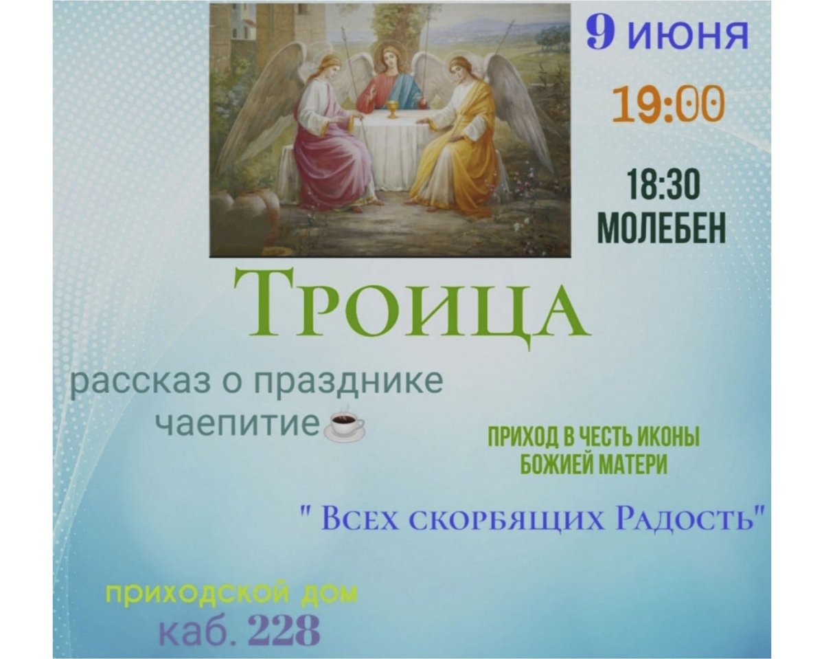 Братство прихода иконы Божией Матери приглашает на беседу, посвященную празднику Святой Троицы