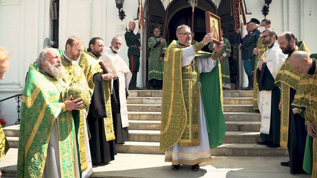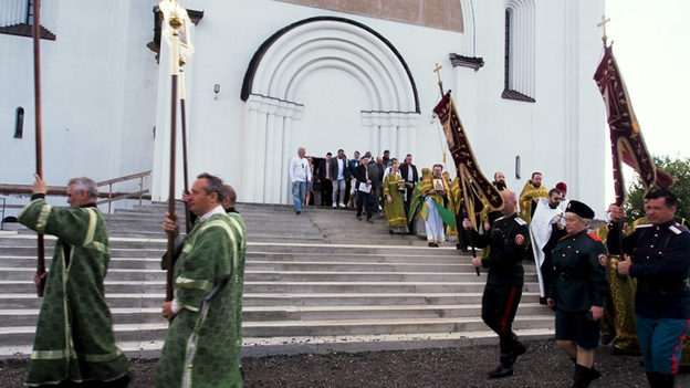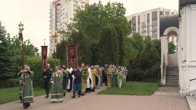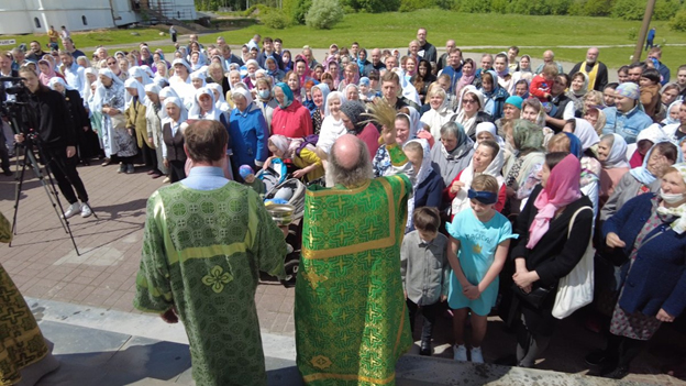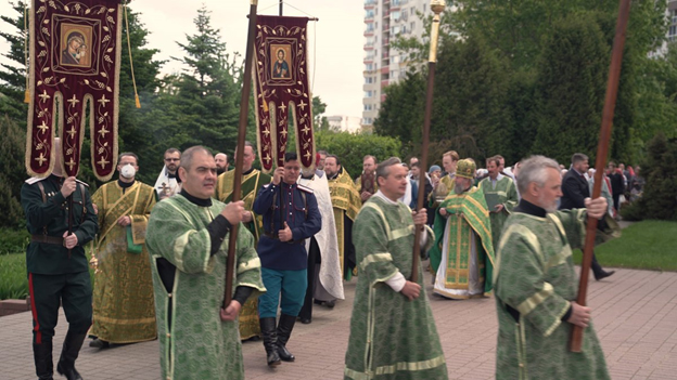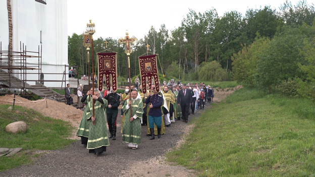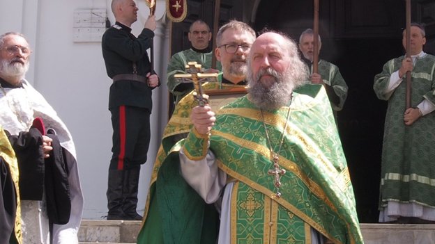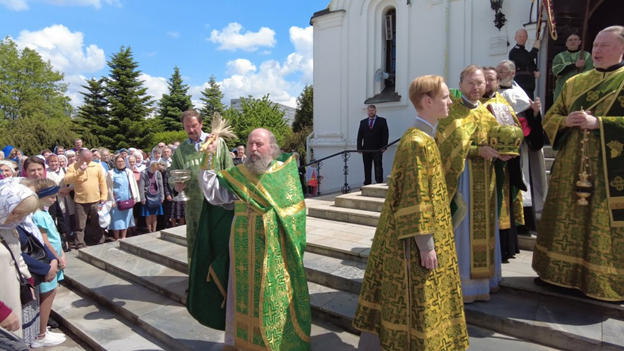 | По окончании Божественной литургии в соборе иконы Божией Матери "Всех скорбящих Радость" прошёл крестный ход к Свято-Евфросиниевской церкви, в котором участвовали клир и многочисленные прихожане. |