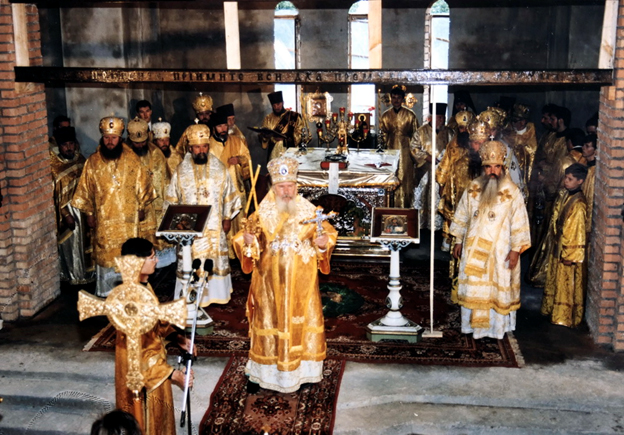 | Свято-Евфросиниевская церковь начала строится в 1993 году, а в 1995 году первую Божественную литургию в ещё недостроенном храме совершил Патриарх Московский и всея Руси Алексий II. |