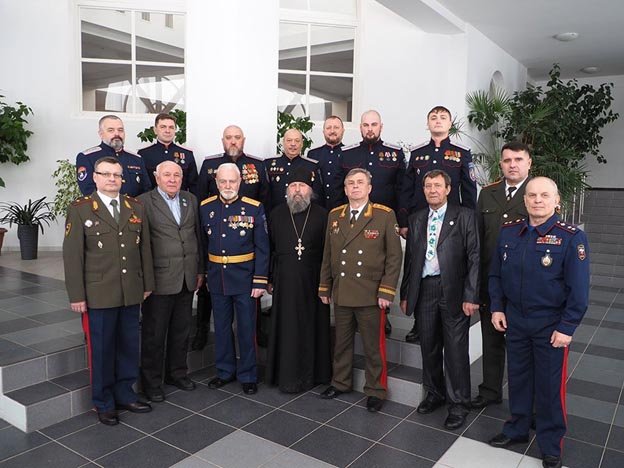 | 23 февраля в Минском приходе храма иконы Божией Матери "Всех скорбящих Радость" состоялся сбор Белорусского отдельного казачьего округа Международного союза общественных объединений "Всевеликое Войско Донское", посвящённый "Дню защитников Отечества". В сборе участвовали: атаман Белорусского отдельного казачьего округа "Всевеликое Войско Донское" генерал полковник казачьих войск Россолай Е.А., начальник штаба генерал-лейтенант казачьих войск Калинин П.М., заместитель атамана генерал-лейтенант казачьих войск Курчевский О.П., Председатель минской городской организации ветеранов ВВС и войск ПВО РБ Клубничкин М.И., казаки представители региональных отделов "Всевеликого Войска Донского", приглашённые гости. Чин благословения открытия сбора казачьего общества совершил председатель Синодального отдела Белорусской Православной Церкви по взаимодействию с казачеством, настоятель Радосте-Скорбященского прихода протоиерей Игорь Коростелёв. Атаман БОКО МСОО "Всевеликое Войско Донское" генерал-полковник казачьих войск Россолай Е.А. представил собравшимся доклад о предстоящем празднике "День защитников Отечества" и познакомил собравшихся с историей праздника, с трудами объединения, его международных связях, целях движения. "За значительный личный вклад в развитие и становление казачества, службу на благо народа, восстановление славных казачьих традиций и возрождение казачьего духа" председатель Синодального отдела БПЦ по взаимодействию с казачеством протоиерей Игорь Коростелёв был награждён орденом "Святого великомученика Александра Шмореля". |