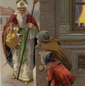 Изначально именно от имени Святителя Николая малышам дарили подарки в день Николы зимнего. Потом дату перенесли поближе к Рождеству — 24 декабря. А один из рассказов о чудесах святого рассказывает о том, как он спас от бедности старика и трех его дочерей, которых тот едва не отправил зарабатывать на жизнь блудом. Трижды Святитель Николай приходил ночью к его дому и подбрасывал в его окно кошельки с золотыми монетами, а по другим версиям — высыпал деньги в обувь на пороге дома или даже бросал в трубу дома (после чего монетки попадали в носки, сушащиеся над камином). Таким же образом он помог многим нищим. Так появилась традиция класть подарки для детишек в башмачки под елкой или в носки у камина. Вскоре в разных странах образ Николая Угодника претерпел изменения и обрел новые имена, но внешность зимнего волшебника, дарителя подарков, менялась мало (статный добрый старец с длинной густой бородой), а в именах зачастую схожи по звучанию со Святым Николаем.