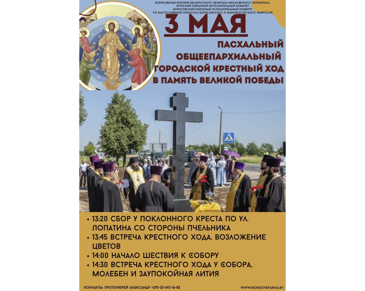 | С 30 апреля по 3 мая в Борисовской епархии состоится Пасхальный общеепархиальный крестный ход в память Победы в Великой Отечественной войне.