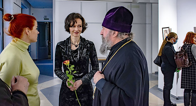 | 20 января 2022 года представители Минской духовной академии протоиерей Андрей Волков, иеромонах Андрей (Василюк), Максим Бабашев и председатель Синодального отдела по церковному искусству, архитектуре и реставрации протоиерей Игорь Коростелёв приняли участие в торжественном открытии выставки "Подвижники Жировичской обители", организованной в галерее Белорусской государственной академии искусств. В торжественном открытии выставки приняли участие ректор Белорусской государственной академии искусств Борозна Михаил Григорьевич, декан художественного факультета Кононова Анна Владимировна, заведующий кафедрой рисунка народный художник Беларуси Товстик Владимир Антонович, народный художник Беларуси Мисько Иван Акимович, а также гости выставки. Секретарь Ученого совета Минской духовной академии иеромонах Андрей (Василюк) выступил перед участниками собрания с приветственным словом. На выставке представлена серия живописных портретов белорусских духовных деятелей, связанных со Свято-Успенским Жировичским монастырем. Автор работ – Елизавета Пастушенко, доцент кафедры рисунка и заведующий подготовительным отделением Белорусской государственной академии искусств. Работы выполнены в технике сухой пастели по специальной фактурной бумаге. Представленный ею творческий проект осуществлён в результате работы по гранту Президента Республики Беларусь в науке, образовании, охране здоровья, культуре на 2021 год. Информация об авторе портретов: Елизавета Анатольевна Пастушенко родилась в Минске в 1982 году. В 2002 году окончила Минский колледж искусств. В 2008 году – учреждение образования "Белорусская государственная академия искусств", художественный факультет, направление "станковая графика". В 2008 году стала членом Белорусского союза художников. С 2008 года преподает дисциплину "Рисунок" в Белорусской государственной академии искусств. Елизавета Пастушенко является прихожанкой минского храма иконы Божией Матери "Всех скорбящих Радость". |